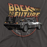 Gray t-shirt with 'Back to the Future' graphic design featuring a car.