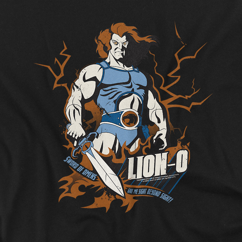 Call upon the Eye of Thundera with this officially licensed Lion-O t-shirt. The fearless leader of the Thundercats stands strong with the Sword of Omens in hand, ready to defend Third Earth against Mumm-Ra and his minions.