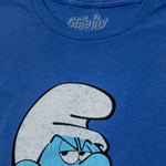 Birds, secrets, parades, and having fun? Not for Grouchy Smurf! If you're a fan of this classic cartoon series, you already know that our pal Grouchy has a long list of dislikes. Don't let that that fool you though - behind that scowl is a Smurf with a soft side! We've paid tribute to this sourpuss Smurf with a comfy retro tee of his very own featuring a graphic of Grouchy with his arms folded. To complete the vintage look and feel of this Smurfs shirt - we've distressed the graphic and printed it on a soft, royal blue cotton tee.