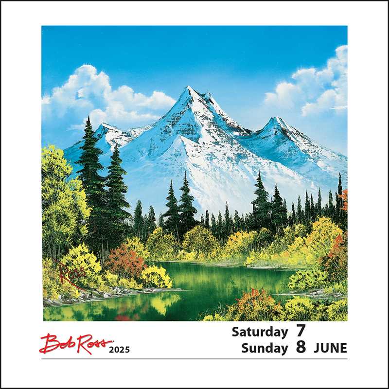 A celebration of America’s most beloved and iconic art instructor, Bob Ross. Delivering the true joy of painting every single day, this official happy little Bob Ross™ 2025 Day-to-Day Calendar features nearly 300 of Bob Ross’s signature landscapes and over 60 of his most inspiring quotes about painting, beauty, and life. A daily dose of Bob Ross’s signature landscapes, complete with clouds, trees, squirrels, and inspiring quotes, shares the joy of painting and his colorful world of “happy accidents.” - Features inspirational quotes from Bob Ross and iconic paintings - Full color tear-off pages - Day/date reference on each page - Includes official major world holidays - Now plastic free!