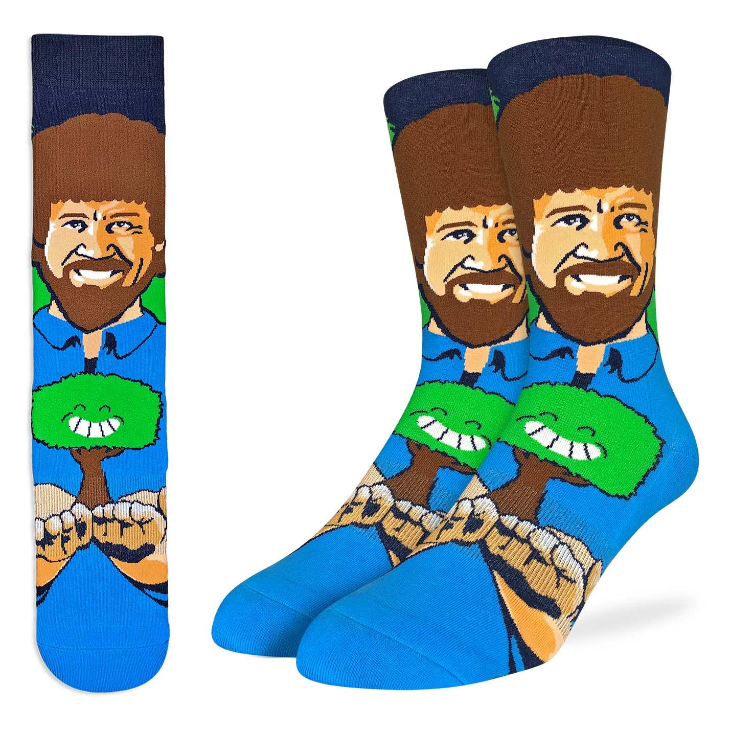 Turn your feet into happy little trees with these Bob Ross socks, featuring vibrant green trees and a portrait of everyone's favorite soothing painter. Reinforced heel & toe for better durability and just the right amount of stretch for all-day comfort. Good Luck Undies are the ultimate everyday essential.