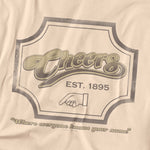 Beige t-shirt with Cheers logo, “Est. 1895,” a handshake emblem, and the phrase “Where everyone knows your name.”