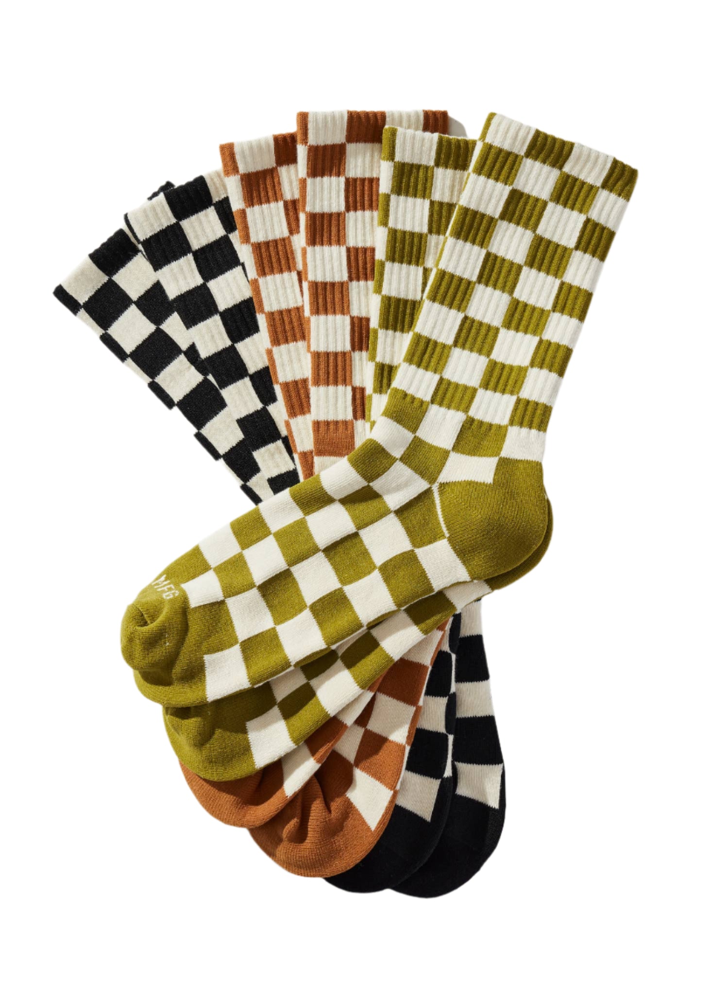 Checkerboard crew socks. One Size - Adult Size Fits 9-11. Imported.