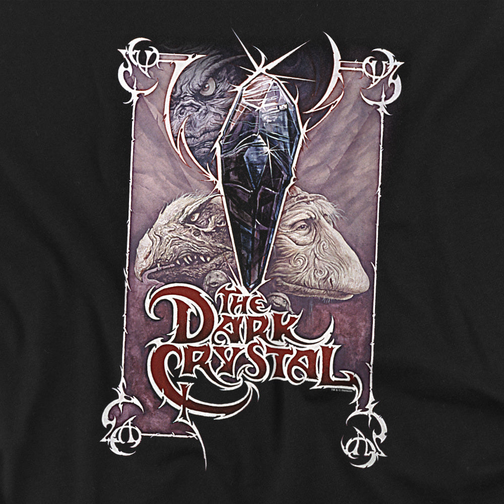 The Dark Crystal movie poster t-shirt featuring the iconic shard design with the Skeksis and Mystics from Jim Henson’s fantasy masterpiece.