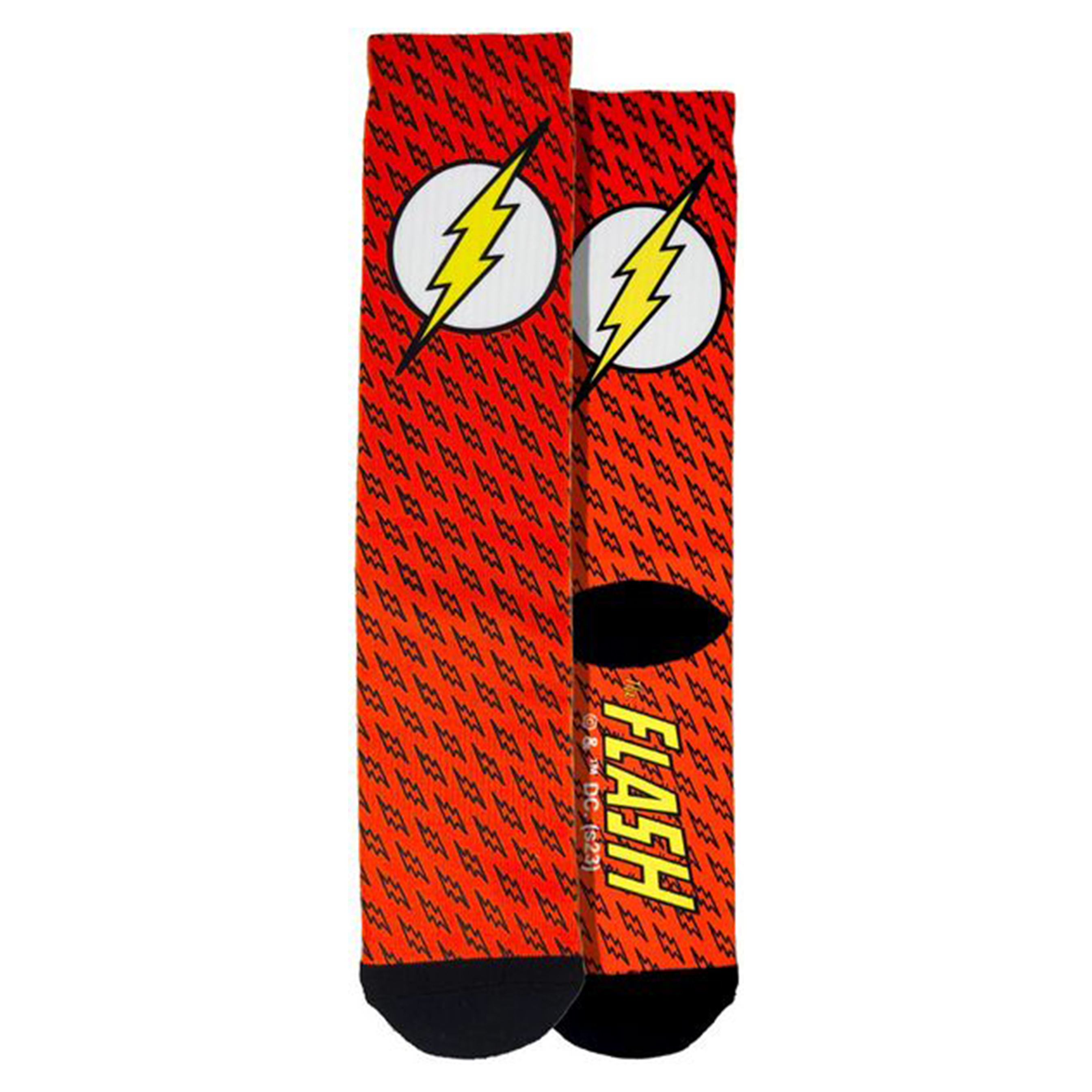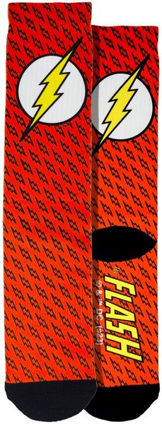 Flash Socks. These unisex crew socks are made of a polyester blend. One size fits most. Machine washable.