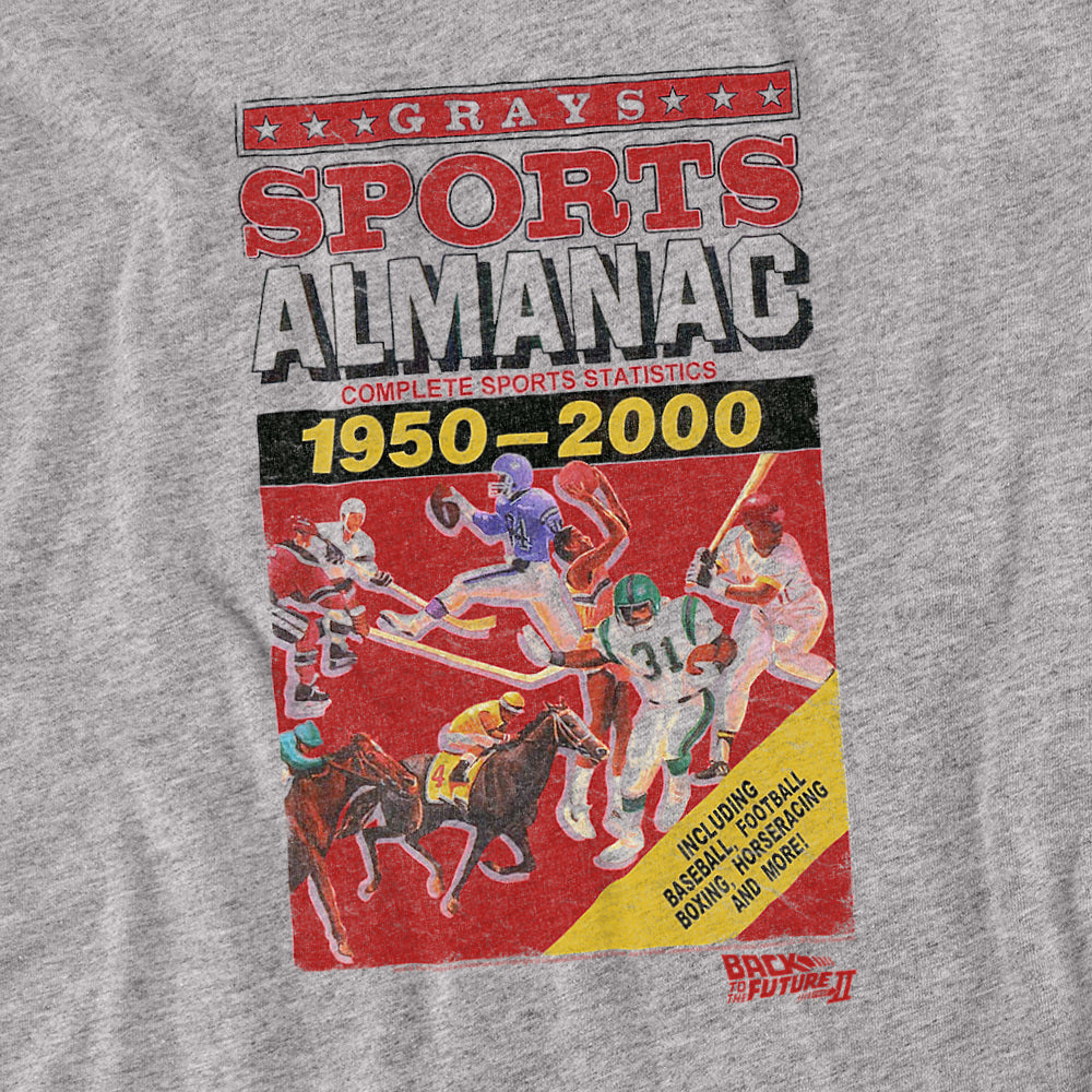 Great Scott! Here’s the shirt that makes every fan smile (and Biff drool). This Back to the Future Part II t-shirt features the legendary Grays Sports Almanac cover, just like the one that almost changed history forever. With its bold vintage-style graphic showcasing football, baseball, horse racing, and more, it feels like a prop pulled straight from the movie. Printed on soft heather gray cotton, it’s the perfect mix of comfort and nostalgia, ideal for movie marathons, retro collections, or anyone who knows the future is worth betting on.
