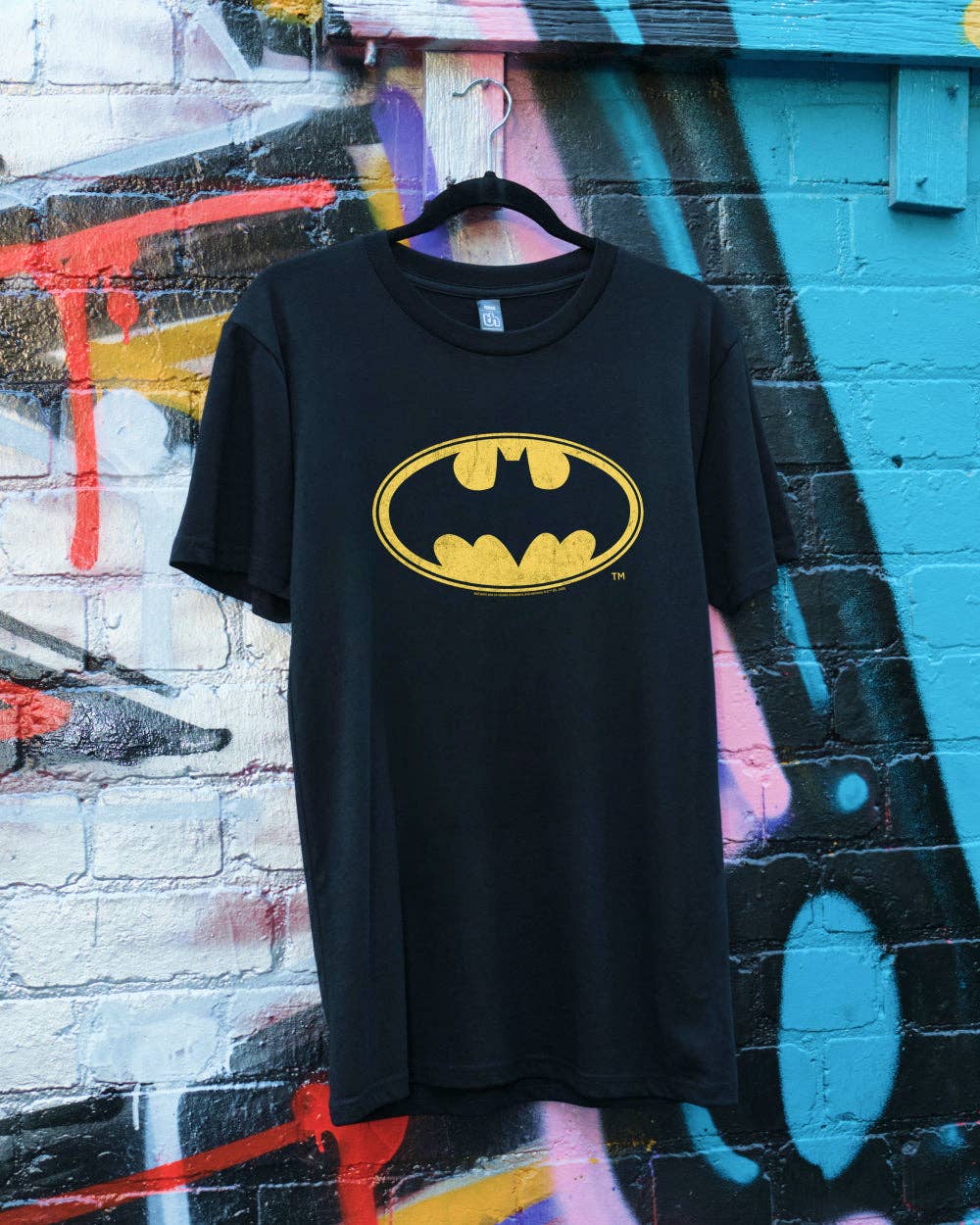 This shirt features the iconic bat symbol, just like the one you wore in the summer of '89.