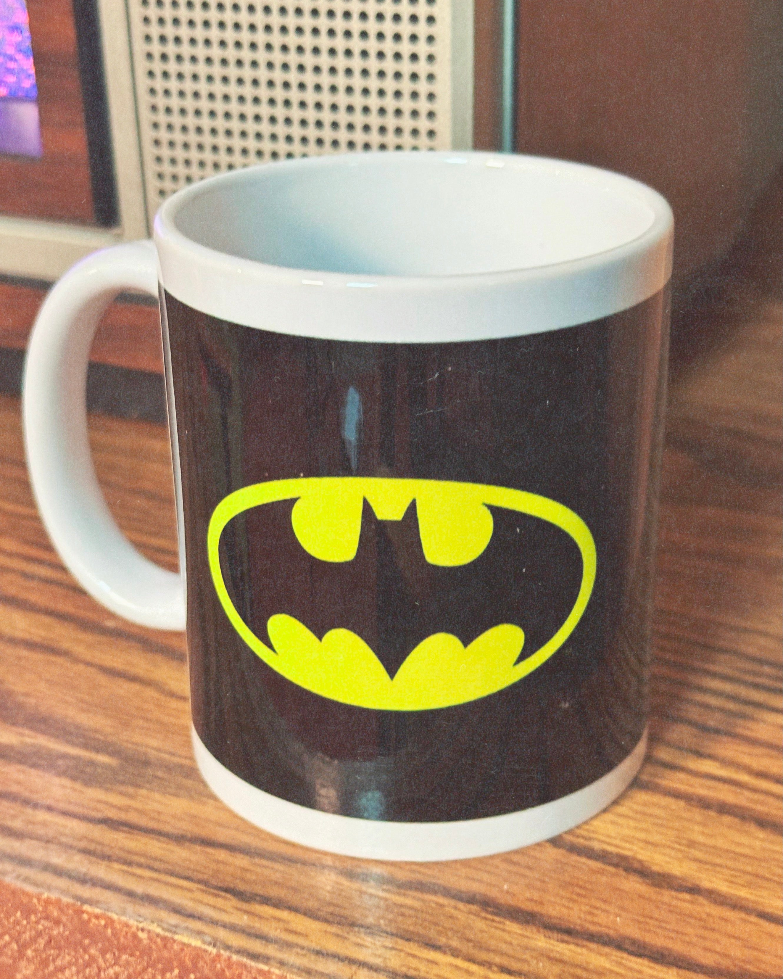 Officially licensed Batman coffee mug featuring the iconic Batman logo
