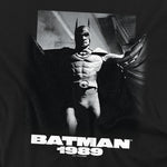 Black t-shirt with monochrome graphic of Michael Keaton’s Batman and bold “Batman 1989” text.