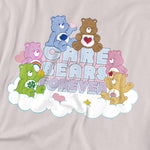 Light gray Care Bears t-shirt with multiple characters sitting on clouds above the words “Care Bears Forever.”