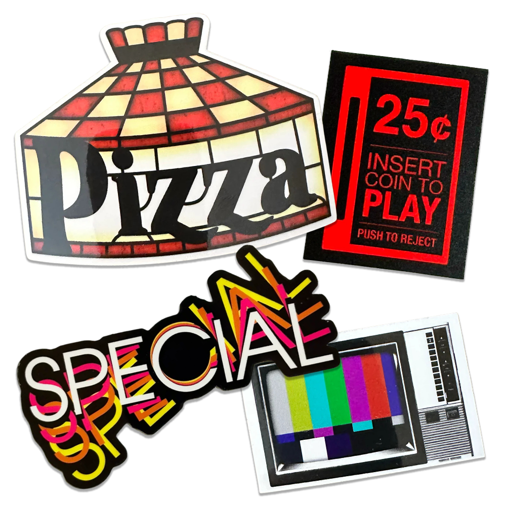 The first edition in a series of retro 80s stickers designed by Rerun! Includes the following four stickers: