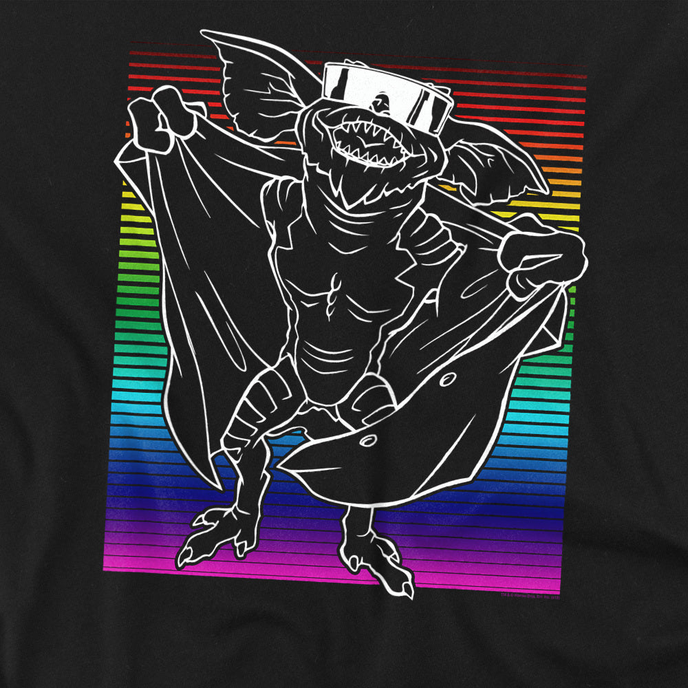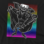From the shadows of the 80s cult classic Gremlins 2: The New Batch comes one of the film’s most unforgettable creatures — the Bat Gremlin. This tee brings him to life in a neon-lined design, with glowing rainbow stripes that scream retro 80s arcade energy.