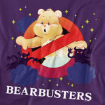 Purple t-shirt featuring Tenderheart Bear inside a red “no ghost” symbol parodying the Ghostbusters logo, with spooky black shadow creatures and the text “Bearbusters” underneath.