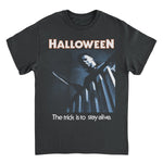 This black t-shirt features licensed art from John Carpenter's Halloween movie. Made from 100% cotton, it offers a comfortable, classic fit and durable construction, perfect for everyday wear.