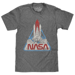 To complete the retro feel of this vintage NASA shirt - we've distressed the entire graphic and printed it on the highest quality, poly-cotton Graphite Heather t-shirt we could find.