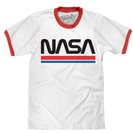 To complete the retro feel on this vintage NASA shirt - we've printed it on the highest quality, cotton ringer t-shirt we could find. This ringer shirt is white with sewed-on red ribbing on the collar and sleeves.