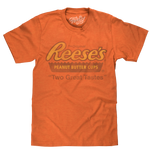 Reese's Peanut Butter Cups combine two great tastes, and we managed to fit both of them on this tee! We’ve taken the authentic licensed Reese's Peanut Butter Cup logo and "Two Great Tastes" phrase and gave it a fun, distressed look. To complete the retro feel, we’ve printed it on the highest quality poly-cotton orange Heather tee around.
