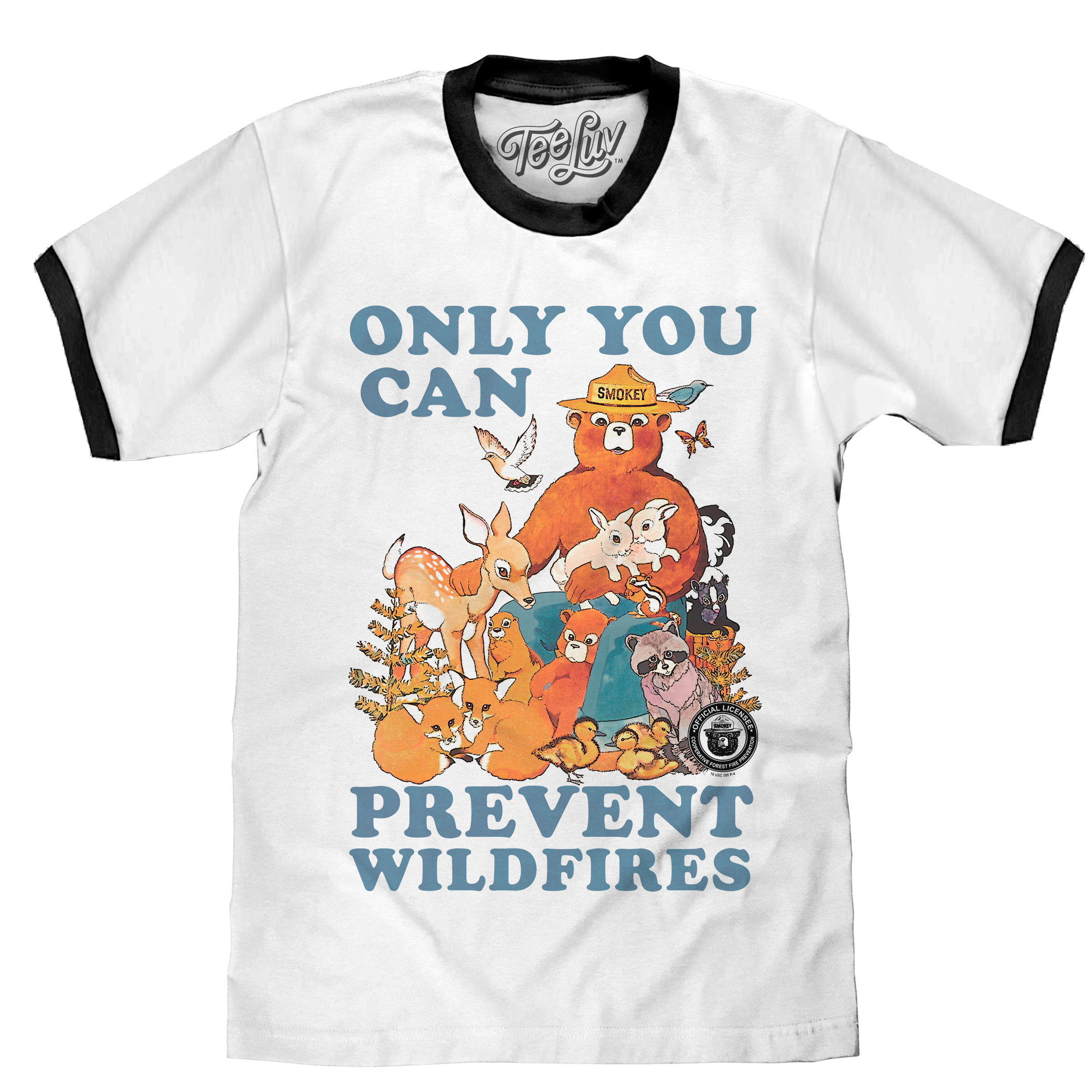 Smokey Bear Only You Can Prevent Wildfires Ringer T-Shirt - White and Black