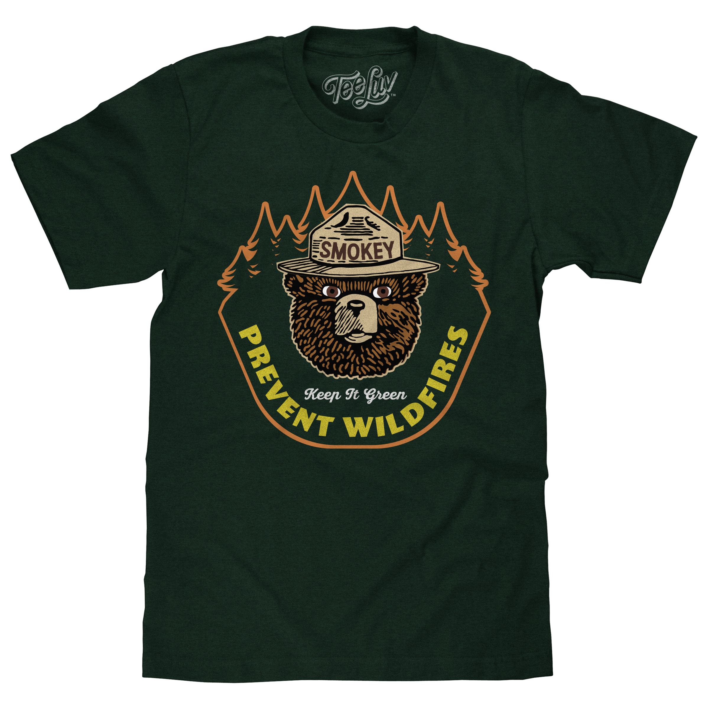 Smokey Bear Keep It Green Prevent Wildfires T-Shirt - Forest Green