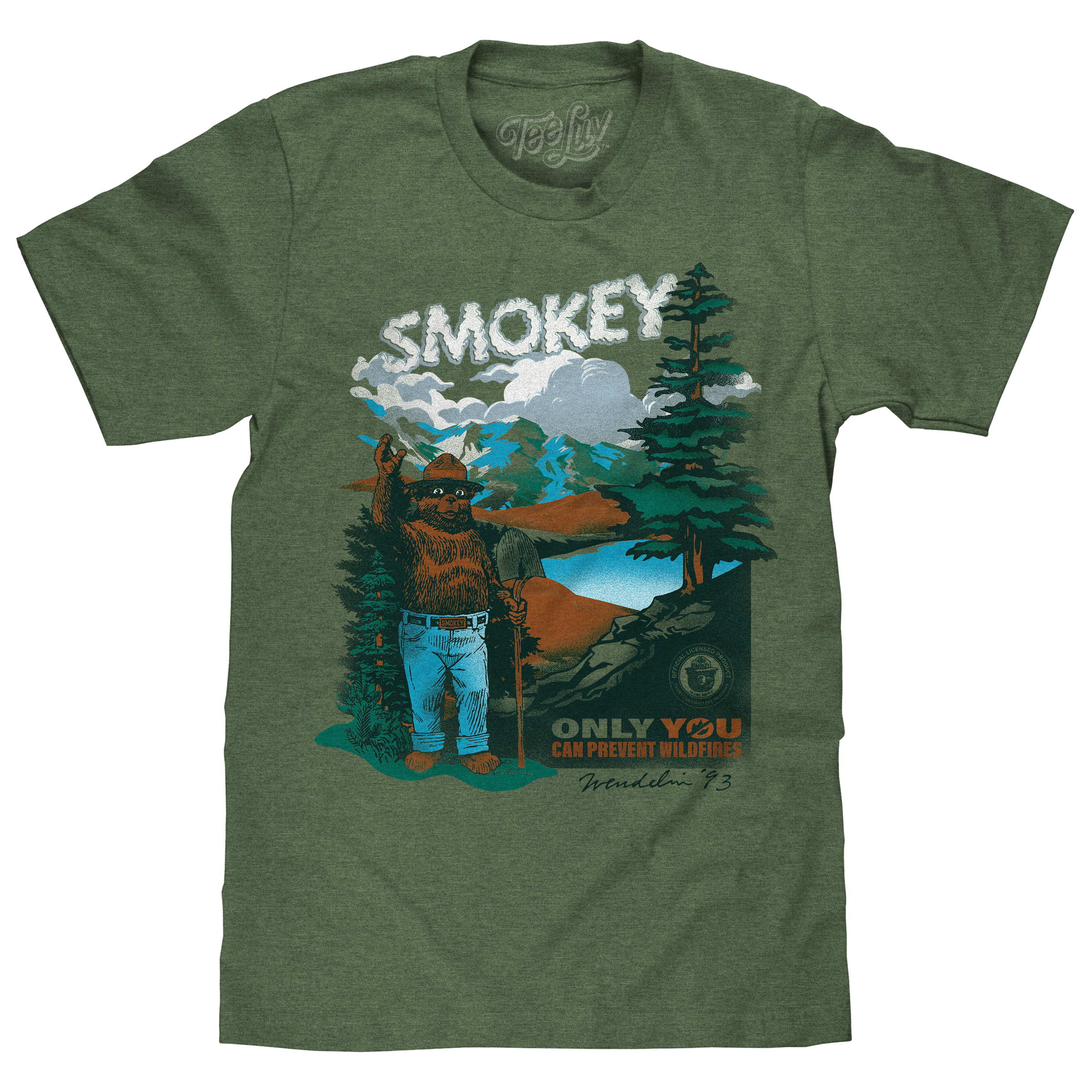 Smokey Bear Only You Can Prevent Wildfires Retro Graphic T-Shirt - Canyon Green