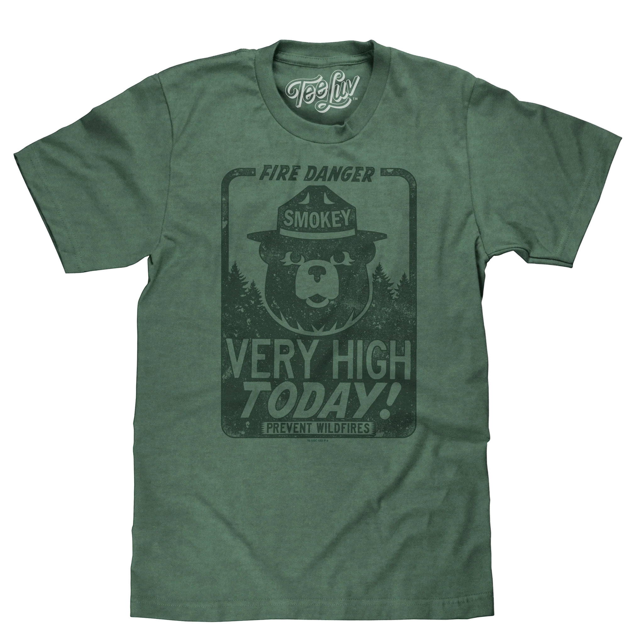 To help Smokey spread the word, we've featured the authentic licensed Smokey Bear mascot and "Fire Danger Very High Today!" text on this tee. For the complete retro look and feel - we've printed it on the highest quality tri-blend Dark Green Heather tee around. Perfect for your next camping trip, or just everyday casual wear!