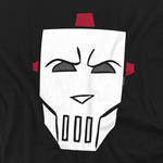 Black t-shirt featuring the bold white hockey mask face design of Casey Jones from Teenage Mutant Ninja Turtles, with red accents.