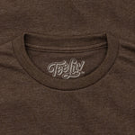 For the complete retro feel, we've printed it on the highest quality, poly-cotton Brown Heather tee around.