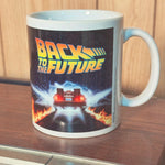 Officially licensed Back to the Future coffee mug featuring the iconic DeLorean