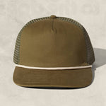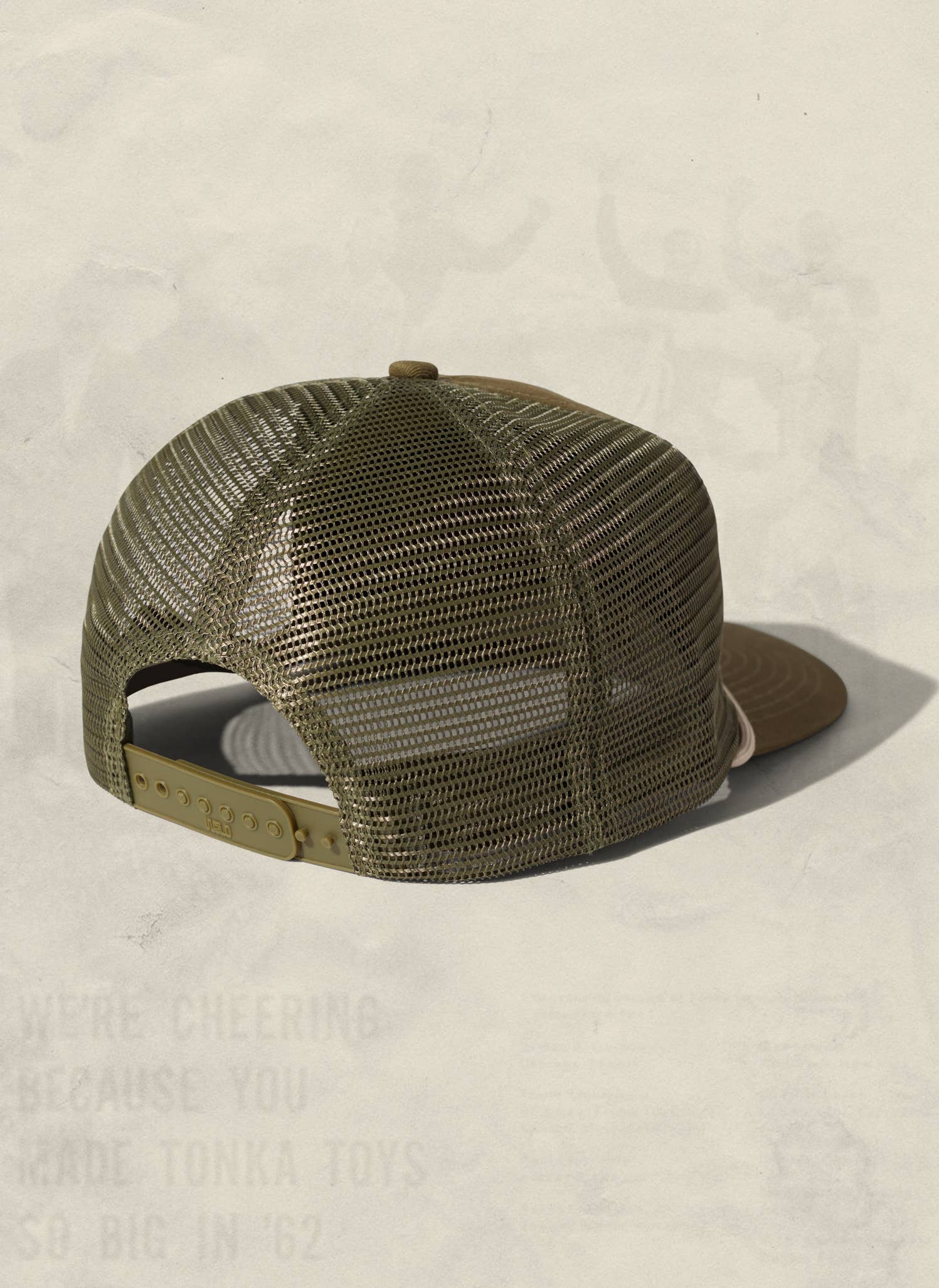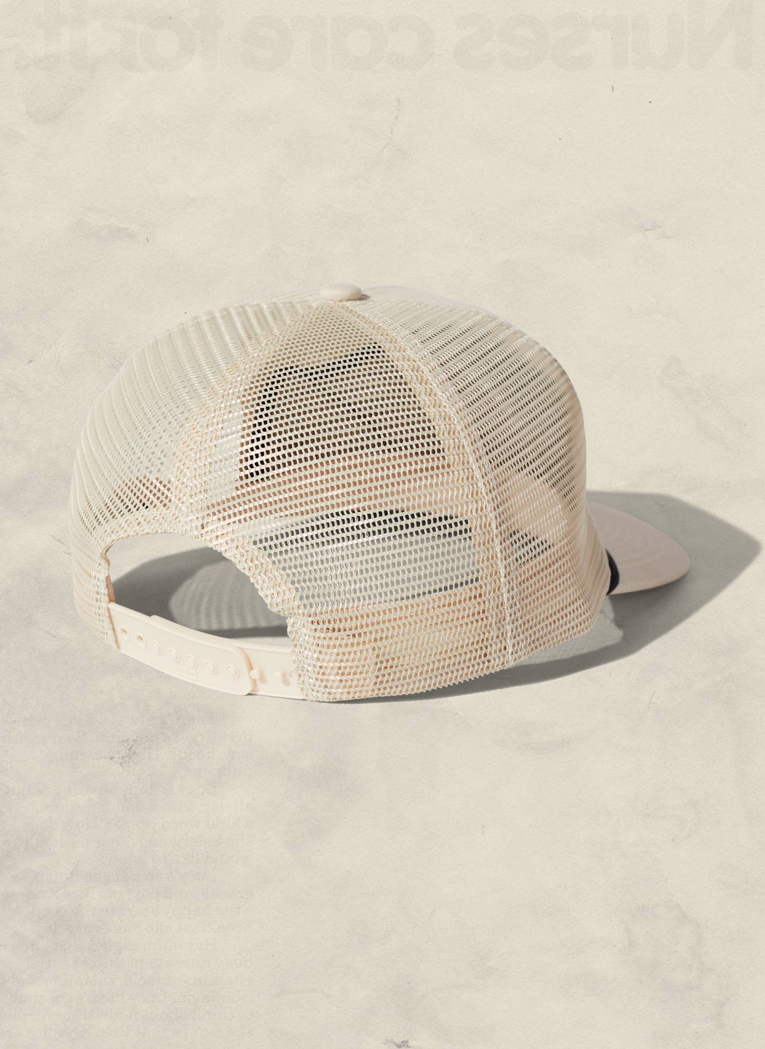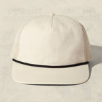 5-panel trucker hat. There is a mesh liner behind the front panels to help maintain shape of the soft 100% cotton fabric. The brim is the same size but has a slight curve and features a rope. Its build is derived from our nostalgia for vintage workwear hats. The timeless hats have a plastic snapback closure. 100% Cotton Fabric Snapback Closure. Slight Curved Brim with rope. Our original fit. One size fits most. Imported.