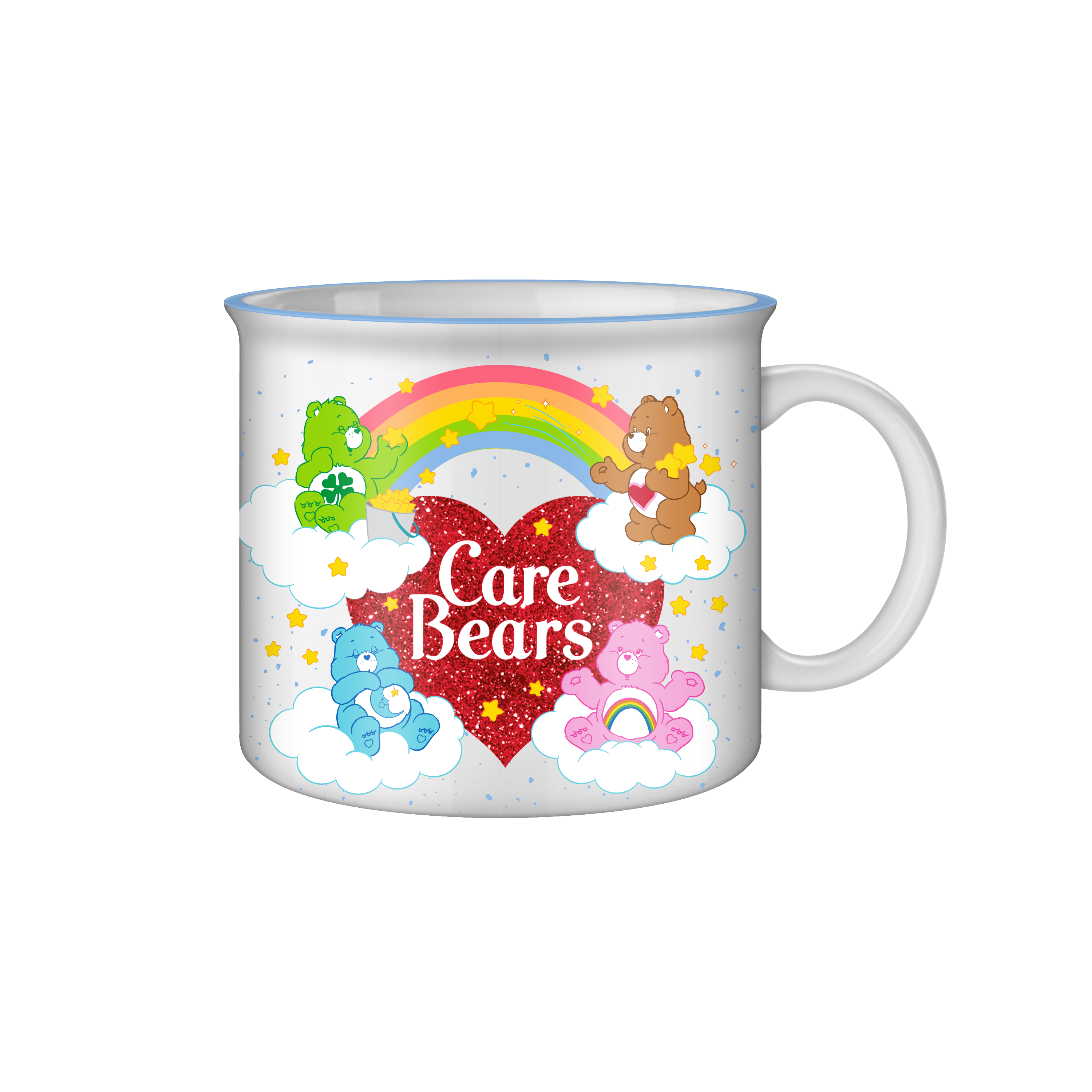 Ceramic mug: enjoy a nice cup of coffee or tea in this awesome care bears 20oz rainbow heart logo ceramic camper mug Multiple uses: not just for coffee, our care bears camper mug can also be used as a paperweight, storage for pens or loose change, or even mug cakes Durable and sturdy: our care bears ceramic mug is perfect for hot or cold beverages and is bpa-free. Due to the glitter on the mug, it is not microwaveable and is hand wash only. Officially licensed: have confidence knowing you are purchasing an officially licensed care bears product from silver buffalo Makes a great gift: this makes a great gift for all the care bears fans in your life; whether it's for girls, boys, kids, or adults. Great for any occasion whether it is christmas, birthday, or housewarming gift.