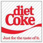 Diet Coke Just for the Taste of It 80's Mini Sticker! Originally a soda pop advertisement from the Eighties, this die cut decal features the classic Diet Coke label "Just for the taste of it"; Great for phones, laptops, water bottles, fridges, and more. * Officially licensed by Coca-Cola * Scratch & weather-resistant * Sticker measures 2"W x 2"H