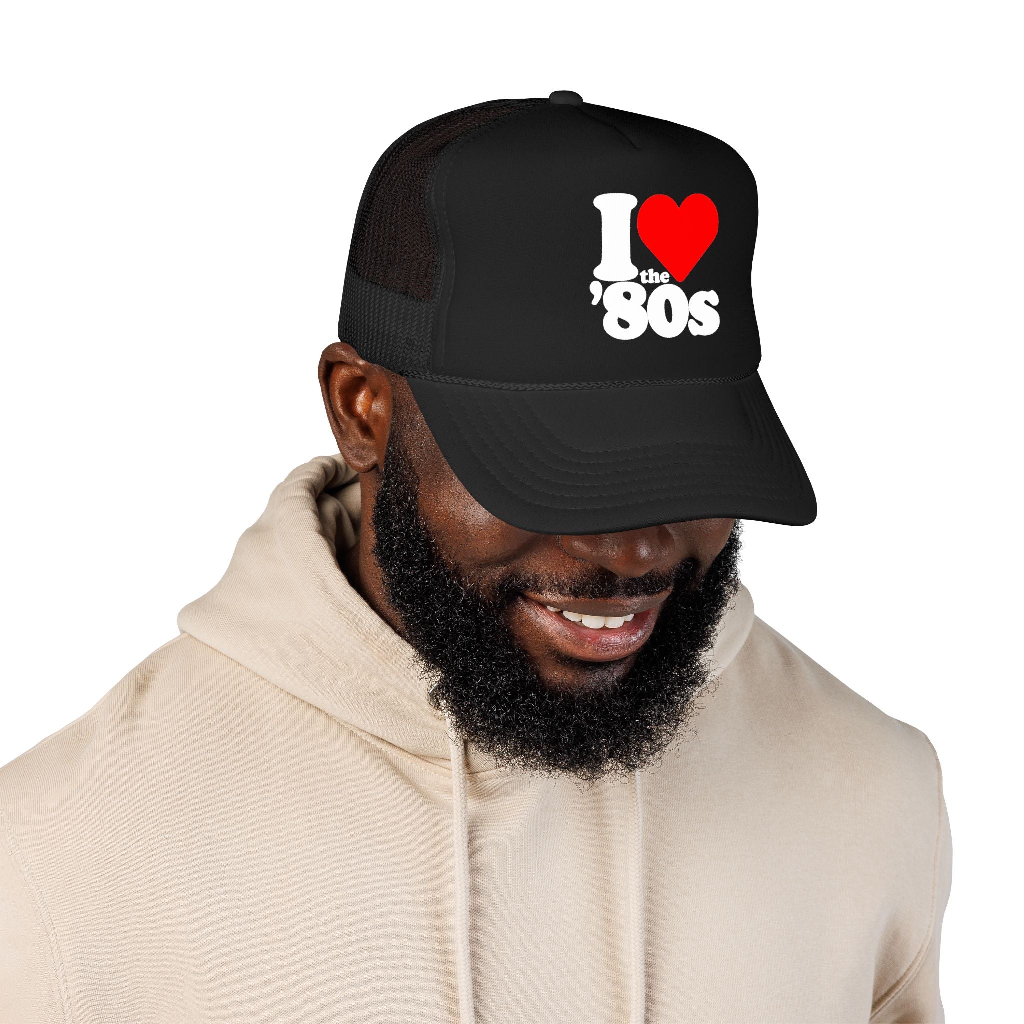 This foam trucker cap brings a vintage arcade vibe to everyday wear. The structured, high-profile silhouette and seamless foam front panel hold a bold red graphic that reads I I Love the 80's — nostalgic, playful, and a touch rebellious. The mesh back keeps things breathable on long days outdoors, while the pre-curved visor and sturdy construction give it a lived-in, road-ready attitude. Slip the snap closure to fit and let the hat sit just right: part retro gamer, part street-ready staple. Wear it camping, commuting, or to a weekend market where it signals someone who remembers coin-operated machines and likes gear that lasts.