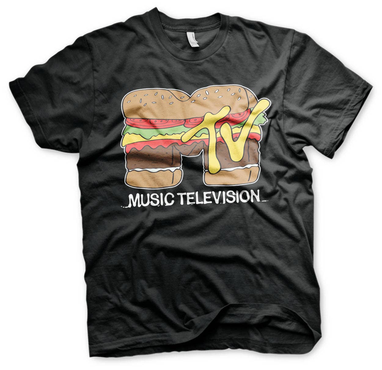Sink your teeth into a helping of nostalgia with this wonderfully weird, officially licensed MTV Hamburger T-Shirt. Featuring the iconic MTV logo reimagined as a mouthwatering burger, complete with a sesame seed bun, lettuce, tomato, cheese, and all the fixings that would make any 80s food court jealous.